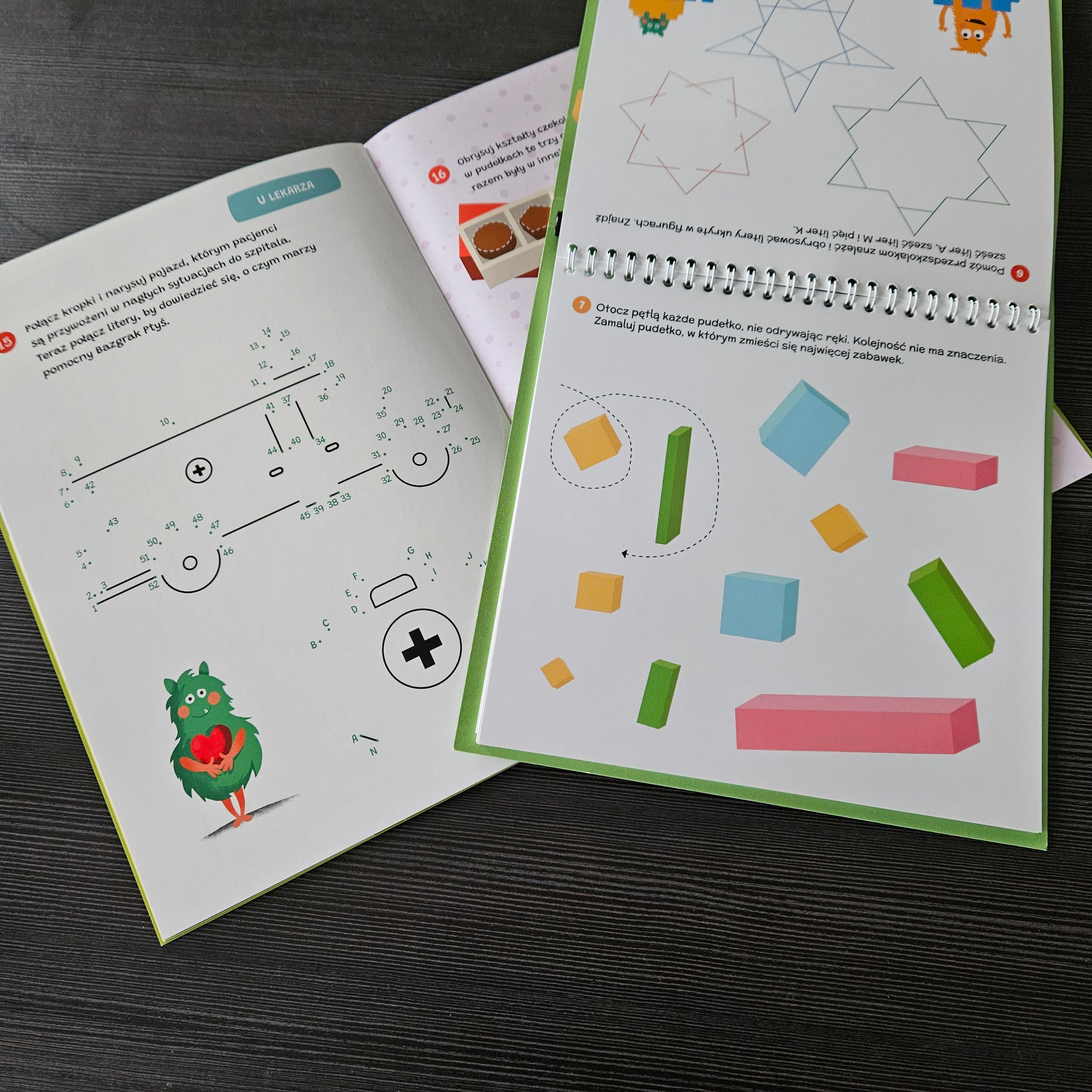 W pudełku znajdziemy kilka plansz z obrazkami do wyklejania i piankowe naklejki – kwadraty, które należy przyklejać według wzoru. Wyklejanka jest angażująca i naprawdę uczy cierpliwości. Dostępne są wzory takie jak m.in. Pojazdy, Dinozaury, Zwierzęta czy Księżniczki, idealne dla dzieci w wieku 3 – 5 lat. Ich wadą jest niestety cena, aczkolwiek w zamian dostajemy produkt pięknie opracowany graficznie i naprawdę dobrej jakości.
