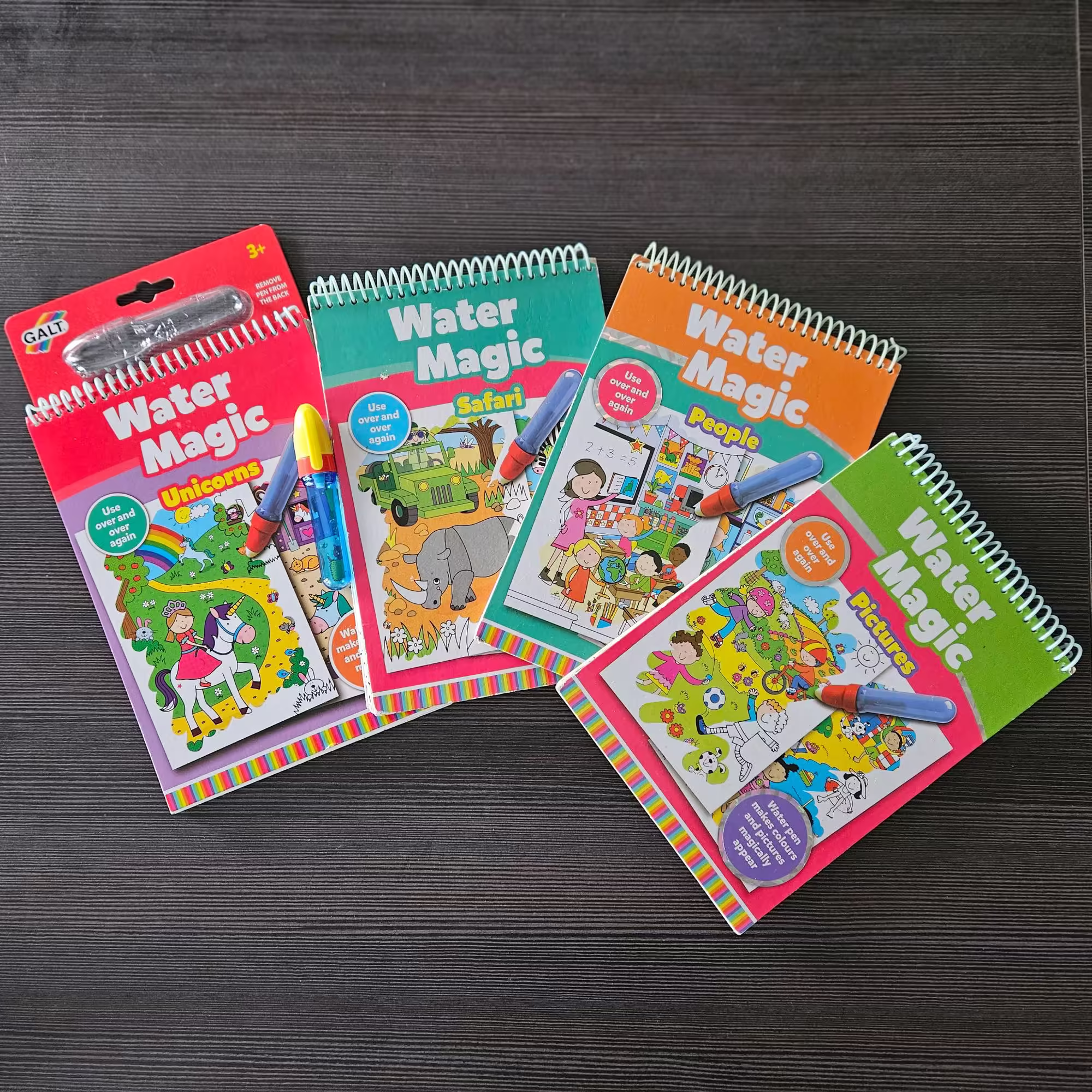 Nasze odkrycie sprzed dwóch lat, kupione przypadkiem. Kupujemy przed dłuższymi wyjazdami jedną czy dwie książeczki. Jest to seria skierowana głównie do dziewczynek, bo dostępne są wzory z księżniczkami Disneya, Barbie czy Myszką Minnie. Niektóre z serii mają brokatowe naklejki, więc to w ogóle jest szaleństwo. Duży wybór znajdziecie tu.